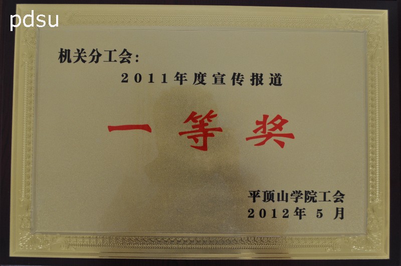 机关分工会受到校工会表彰 近期,机关分工会被校工会授予2011年度“先进教工小家”、“宣传报道一等奖”、“综合工作一等奖”。